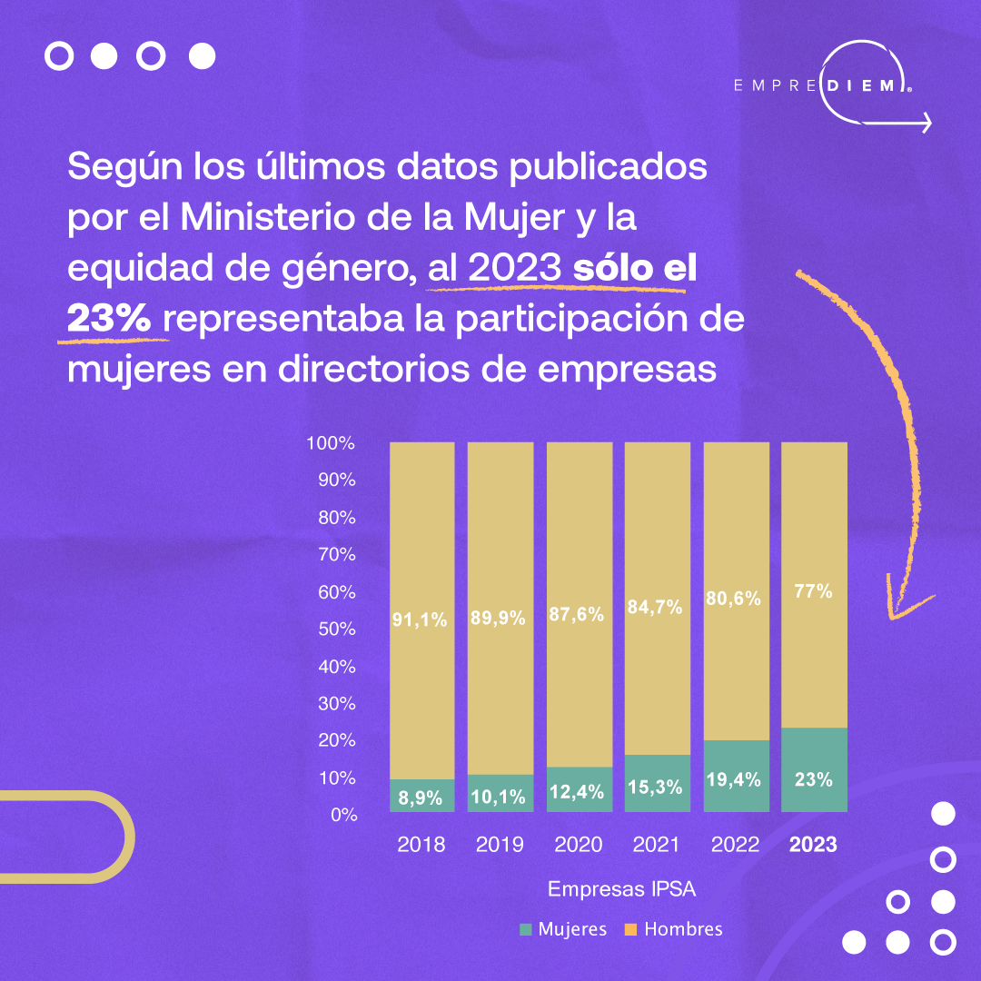 De acuerdo con las estadísticas actuales del Ministerio de la Mujer y Equidad de género, sólo un 23% de mujeres ocupan asientos en directorios en Chile. Este hecho revela la persistencia de desafíos significativos en la búsqueda de la paridad de género en puestos de liderazgo. Sin embargo, Emprediem se posiciona a la vanguardia al reconocer la importancia de la diversidad para la toma de decisiones efectivas y la innovación.